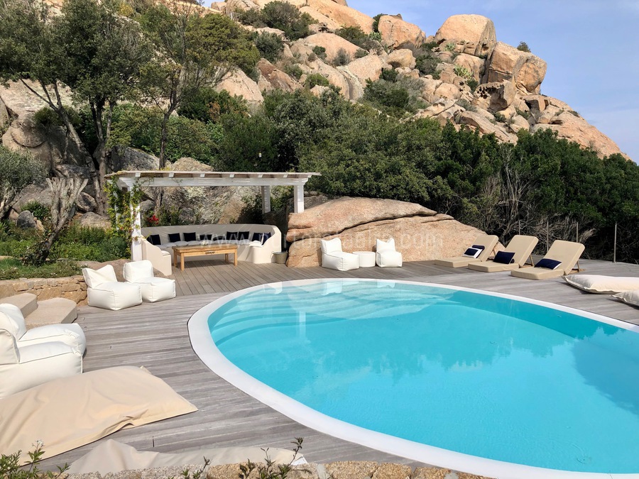 - Piscina a sfioro con deck prendisole e lettini